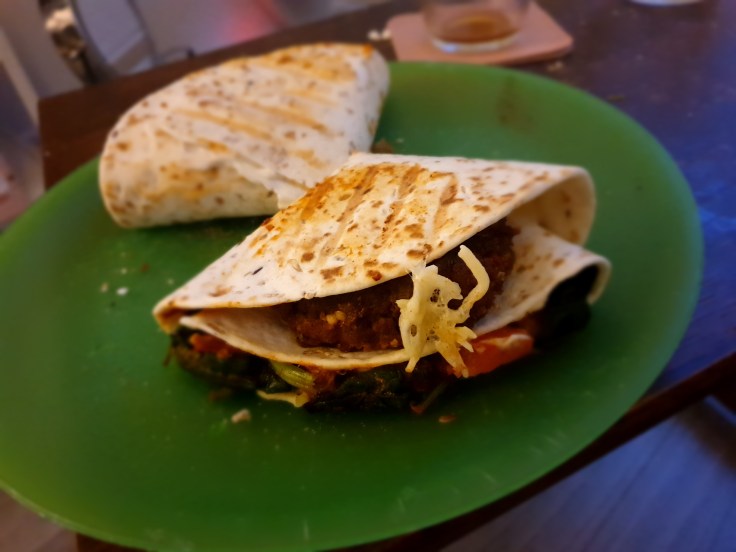 Een combinatie tussen een quesadilla en een buritto samengevoegd zou ik zeggen. Het is de hack die je elke hap alles ingrediënten laat eten. Iedereen heeft het erover maar hoe goed werkt de hack en is het ook lekker? Het ligt er natuurlijk ook aan welke ingrediënten je gebruikt maar vele combinaties zouden werken. Ik heb gekozen voor de klassieke buritto. Paprika, tomaat, spinazie, gekruid gehakt, roomkaas (vegan) en natuurlijk geraspte kaas! Ik heb ervoor gekozen om eerst alles te bereiden en dat te vullen, ik ben namelijk geen fan van rauwe groentes dus alles bak ik eerst goed gaar. Het vullen was erg makkelijk, al moest ik nog wel de volgorde ontdekken. Eindigen of beginnen met kaas? Ik heb beide geprobeerd en allebei werkt wel. Ik heb het gebakken in een grillpan, niet het meeste handige maar het werkt. Een tosti-ijzer is makkelijker. Over al gemeen is het best een leuke hack maar een paar tips. Doe de lagen met een dunne vulling, te dik is niet handig. Ook losse vullingen als geraspte kaas en gehakt valt er snel uit, het gebruik van plakken kaas of een dunne hamburger zou dan misschien makkelijker zijn.