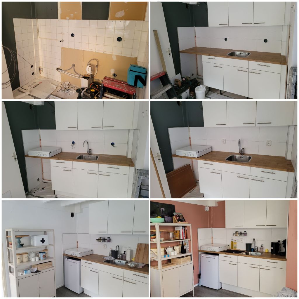 30 Augustus begon de renovatie en het schoot al op. Ik zou gewoon thuis slapen omdat de wc teruggeplaatst zou worden maar dit was helaas niet mogelijk en stond er een camping wc voor me klaar. Maar zonder water en het nergens kunnen wegspoelen vond ik dit geen prettig idee dus heb toch maar bij mijn ouder geslapen. Elke dag ben ik er even heen geweest om te kijken wat de voortgang was en in de eerste week ging het echt heel snel. Elke dag waren er wel nieuwe dingen te zien en dat was echt super fijn. Ook had het bedrijf de sleutels en konden ze gewoon aan de slag zonder dat ik de deur open moest doen. Vrijdag 3 September was ik vrij en ben ik overdag even een kijkje gaan nemen en jahoor, die middag kon ik weer gewoon naar de wc en douchen. Alleen de spiegel enzovoorts moest nog worden opgehangen maar dat had geen noodzaak. Dat weekend heb ik heerlijk thuis kunnen zitten en hebben we al een deel van de spullen weer opgeruimd in de keukenkastjes en woonkamer. De decoratie hadden we nog even gelaten want er zou nog een schilder komen en er moesten dus nog wat kleine dingen gedaan worden. Ook heb ik dat weekend samen met mijn vader de eettafel helemaal geschuurd en opnieuw gelakt, met parketlak. Hij is iets lichter dan dat deze was, moest er even aan wennen maar hij is wel heel mooi geworden.